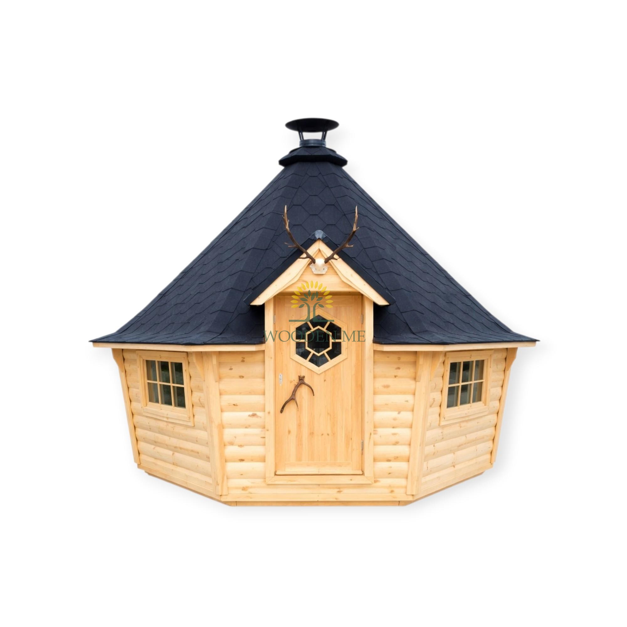 Discover the joy of year-round outdoor dining with our Exclusive Grill Cabin 9.2 m². Thanks to its generous size, this cabin easily accommodates 12 to 15 people. Therefore, it is an ideal choice for larger family gatherings, festive celebrations, or cozy evenings with friends.