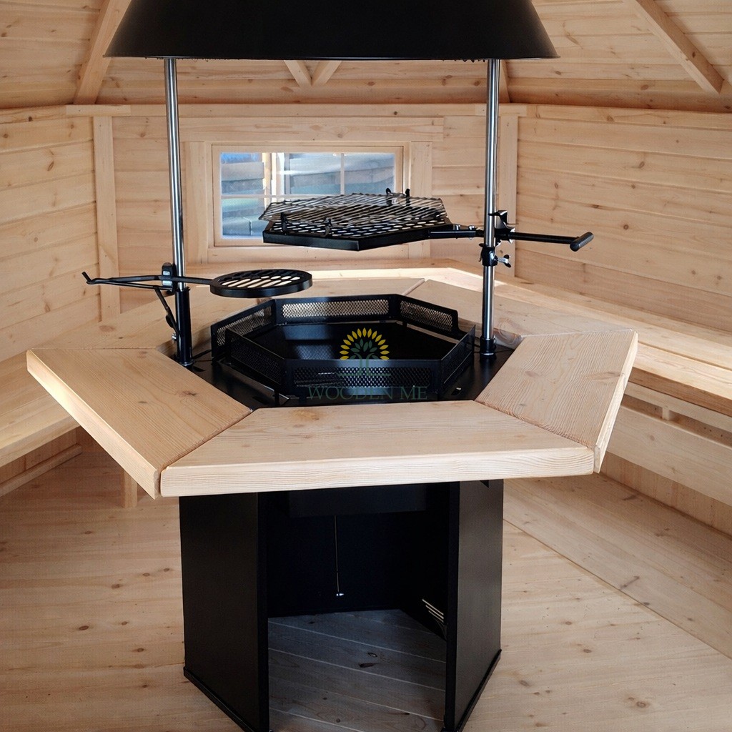Enjoy year-round outdoor dining with our Grill Cabin 7.0 m². Although compact in size, it offers impressive functionality and easily accommodates 5–7 people. Therefore, it is perfect for family dinners, cozy gatherings, and festive celebrations. In fact, this cabin is equipped with a central BBQ grill, fitted benches with cushions, and a practical table, all of which work together to create a warm and inviting atmosphere. Moreover, its durable pinewood construction, double-glazed windows, and Finnish bitumen shingles provide excellent protection and long-lasting comfort. As a result, this cabin not only becomes a practical outdoor shelter but also serves as an attractive garden centerpiece. Whether you are hosting a summer BBQ or enjoying a quiet winter evening, this cabin always offers a welcoming space for relaxation and fun.